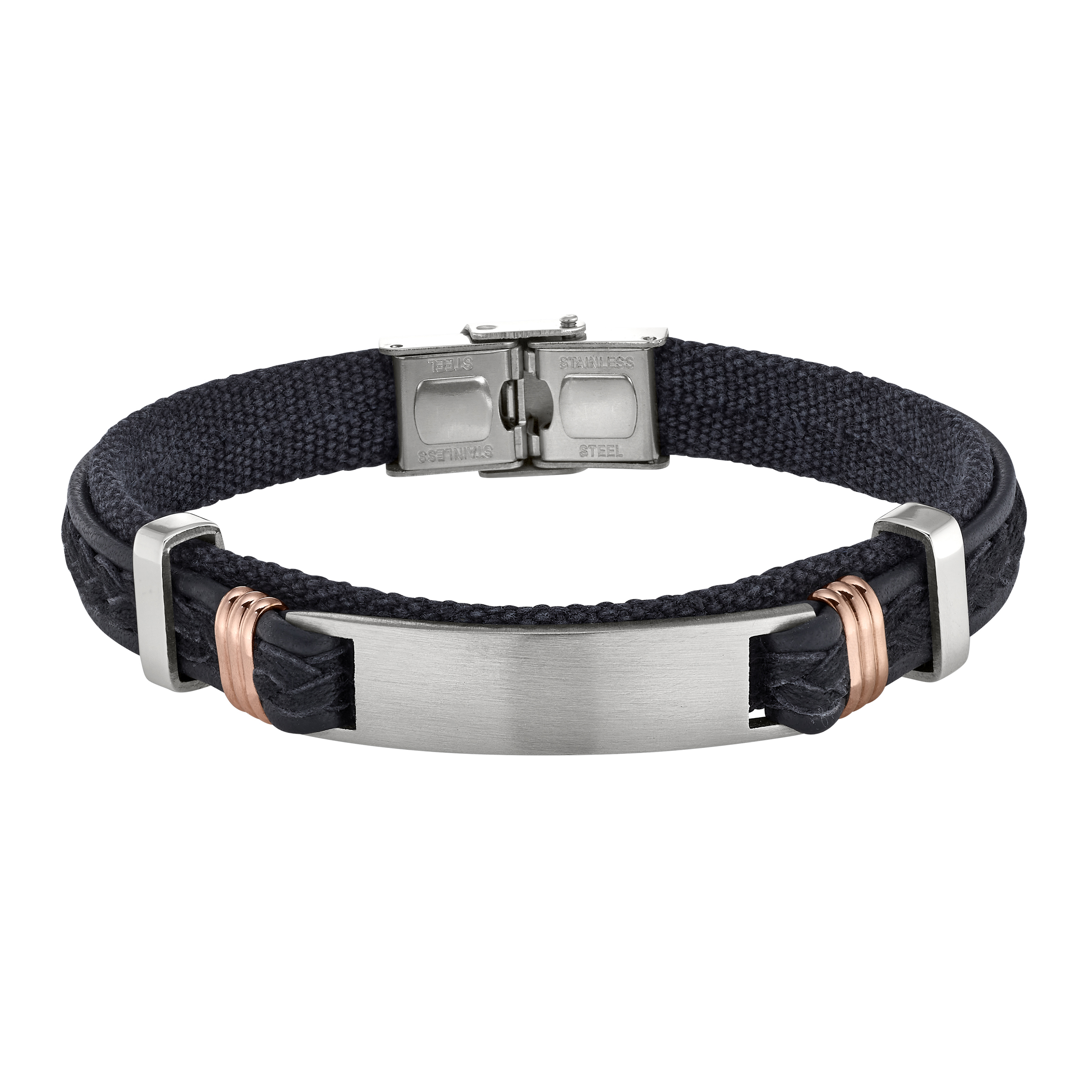 BLACK LEATHER & FABRIC W/LARGE CENTER STAINLESS ST
