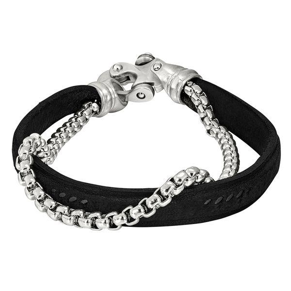 BLACK LEATHER ONE CORD W/BOX CHAIN
