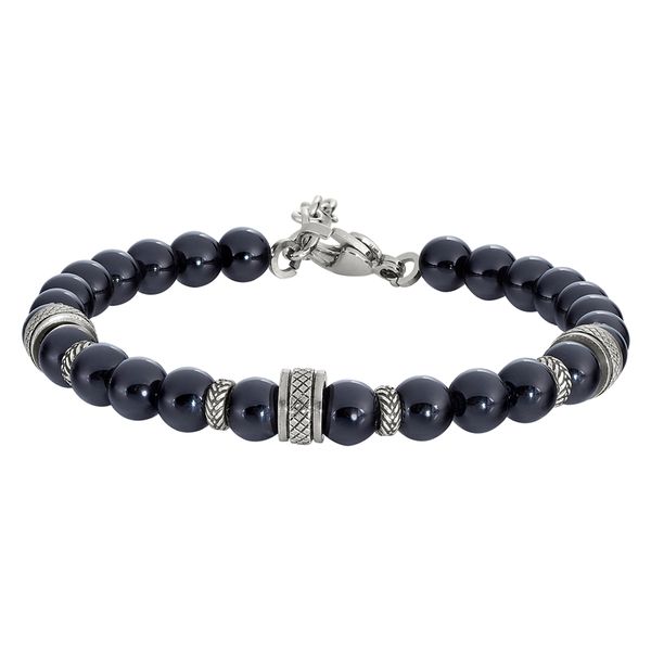 BLACK BEAD W/THREE SILVER SPIRALS AND RONDELS
